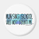 Here's your mantra: Nursing School will not defeat me. This fun saying about the stresses of being a student nurse on t-shirts and gifts from BonafideNurse, your source for the funniest nurse stuff on the web!