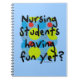 A colourful image asking Are Nursing Students having Fun Yet? makes a fun gift for that stressed out Student Nurse on your list from BonafideNurse, your source for hilarious nurse and nursing student gifts, t-shirts and clothing!