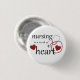 A graphic nurse design with the text "Nursing is a work of heart" on a button.
