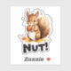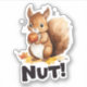 The sticker also has the word “Nut!” in black letters on a white background, adding a touch of humour and surprise.