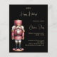 For a Christmas party with family and friends. Black background, and a nutcracker soldier as decor. Personalise and add the details. Golden text.