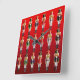 These funny nutcracker toy soldiers in hussar uniforms, with funny hats, spiky white beards and long black moustaches over a hot red background will bring a smile on anyone's face!