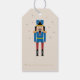 A Christmas gift tag with an illustration of a Nutcracker and some stars on a light brown background. Perfect to decorate your Xmas gifts!