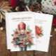 "Seasons Greetings" customisable holiday/Christmas greeting card with a colourful nutcracker and winter greenery. Personalise with your family name and any other text you choose.