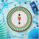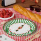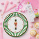 Christmas Nutcracker paper plate in green, white and red tones with green and white stripes and golden stars