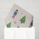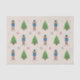 A Christmas tissue paper with an illustration of a Nutcracker pattern, Christmas Trees and some stars on a light brown background. Perfect to decorate your Xmas gifts!