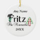 This ornament will help my grand son that he played Fritz in the Nutcracker. When we put the ornament on the Christmas tree, he will remember the ballet and what part he had in the Nutcracker. The ornament was printed correctly and as I requested.