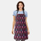 Cute and fun Christmas apron featuring hand drawn illustration of cat, dog, and mouse as nutcracker ballet characters. The background is red.