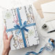 This festive wrapping paper features a charming bearded Nutcracker surrounded by delicate green snowflakes on a crisp white background. It's the perfect way to add a touch of whimsy and traditional elegance to your Christmas gifts.