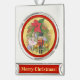 Pretty Nutcracker soldier and sugar plum fairy Christmas, Xmas holiday tree ornament. Silver finish on the rectangle ornament with the words Merry Christmas at the bottom. You can personalise that wording to say something else.