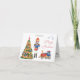 Christmas card for Grandson. Nutcracker with drum next to a colourful Christmas tree and toy train.