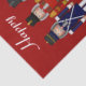 Christmas Nutcracker Trio -Three Nutcrackers standing side by side on top of a solid red background. The first nutcracker is dressed in blue and white with gold embellishments. The centre nutcracker is dressed in red and gold with gold embellishments. The third nutcracker is dressed in green and white with silver embellishments. Each one of these nutcrackers are available separately on assorted Zazzle gifts and products. Two text areas are in place for you to personalise with. Edit the text to say anything you like. Delete or clear the text areas that you do not want. This design is available with assorted background colours.