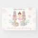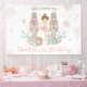 Personalise this sweet pink winter onederland first birthday party welcome sign backdrop banner easily and quickly, simply press the customise it button to further re-arrange and format the style and placement of the text. Featuring whimsical characters from the Nutcracker in sweet pastel colours. Perfect for your little snowflake's first birthday! Also fantastic for other ages and occasions such as baby shower, baptism, christening, new baby and more. Matching items available in store! (c) The Happy Cat Studio.