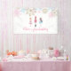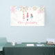 Nutcracker winter birthday pink, blue and gold glitter snowflakes banner.