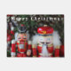 Two expressive nutcrackers with a Christmas background