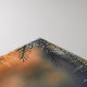 A lovely white breasted nuthatch perched in the familiar pose of these cute little birds. Behind him is a warm glowing Fall forest sunset. Graphic pine and cedar tree branches border the scene. A rich and deeply warm toned nature piece. Bird lovers will adore the sweet little bird!