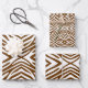 Neutral brown toned repeating Zebra stripe patterned gift wrap sheets. Set of three: Two Large scale and one smaller.