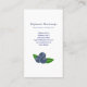 A simple business card with an illustration of purple blueberries and its green leaves: perfect for activities such as farmer, nutritionist, dietician, consultant, manager, healthy activities, etc.