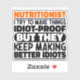 Funny Nutritionist Sayings "Nutritionist I Try To Make Things Idiot Proof But They Keep Making Better Idiots". Grab this Funny Nutritionist design as a funny gifts for an awesome mum, dad or friend.
