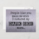 Do some people just grate on your nerves? Do you find yourself wishing you weren't so polite as to do anything about it? If so, this rude and insulting Nuture My Dark Side Postcard stating "People like you make me wish I nutured my dark side more..." is just perfect for you! Send this off as a playful jab to someone who annoys the heck out of you! Customise this funny text design by removing the background layer and/or choosing your own background colour.