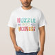 The playful message "Nuzzle into Niceness" is splashed across the shirt in a fun, mismatched rainbow of colours. Each letter boasts a different font and size, adding to the overall whimsical vibe.