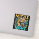 The "Nuzzle night" sticker design features a majestic tiger.The intricate details of the tiger's fur and piercing eyes are brought to life with vibrant colours and meticulous artistry. The night sky twinkles with stars, adding a touch of magic to the scene. This sticker is not just a simple decoration, but a captivating piece of art that evokes a sense of wonder and warmth. Place it on your belongings to bring a touch of wild beauty and tenderness to your everyday life