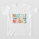 This t-shirt design is all about cosy comfort, with the text "Nuzzle Nooks" displayed in a multicolor palette. The playful font hints at the joy of cuddling up in a favourite spot, while the multiple colours evoke a sense of warmth and relaxation. Imagine snuggling into a soft blanket, the perfect "nuzzle nook," and letting your worries melt away.