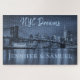 Celebrate your love story with the magic of New York City. This elegant “NYC Dreams” personalized puzzle features the iconic Brooklyn Bridge and Manhattan skyline glowing across the water at night, creating a romantic cityscape filled with possibility and wonder.