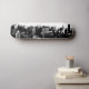 Skateboard with a NYC skyline view from the Empire State Building, black over natural wood grain.
