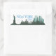 Features an artistic representation of New York City's signature skyscrapers and Statue of Liberty as well as a subtle tribute to the fallen Twin Towers.