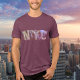 Graphic t-shirt featuring New York City (NYC). The NYC graphic is on the front of this t-shirt. Multi-colours. Customise the back with your name or desired text. Great t-shirt for men, women, and kids. Use the template to create your own NYC graphic t-shirt.