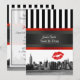 Customisable Invitations and accessories with a river view of the iconic New York City skyline featuring a black & white etched look view of the ESB, Chrysler Building and more as well as a red lipstick kiss. They also feature a black and white striped pattern background and a red and black graphic design ribbon.