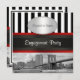 NYC Skyline Brooklyn Bridge, Boat Invitation Suite - Black White Stripe / Red Black Ribbon - Engagement Party Invitation