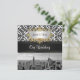 Customisable Invitations and accessories with an iconic view of the New York City skyline from the top of 30 Rockefeller Centre, featuring a black & white photo of the ESB, lower Manhattan including the WTC. It also features a black & white damask pattern, and a black ribbon as well as a white gradient label with your choice of a silver or gold look frame.