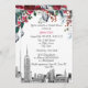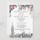Customisable Invitations and accessories with a black and white etched look view of the iconic New York City skyline featuring the Emp St Building and a floral border featuring winter colours.===========