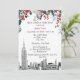 NYC Skyline Etch Look Black White with a Burgundy, Green, Navy Blue, White Floral Border - Bridal Shower Invitation ========