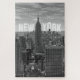 A view of the New York City Skyline looking south on to the ESB all the way down to the new World Trade Centre Buildings. The Caption in the design says "NEW YORK " in a font similar to the famous Hollywood Sign in the Hollywood, California Hills