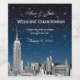 Elegant, stylish, chic customisable invitations and accessories with an iconic view of the New York City skyline, featuring an etched look photo of the ESB and Chrysler Building and rear view of the Flatiron Building shown on a blue gradient background under a starry sky.