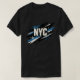 A modern streetwear statement built on motion and scale. Bold condensed “NYC” typography anchors the design, cut through by intersecting diagonal bands in deep black, steel blue, and off-white. The composition feels architectural and fast, capturing the energy of the city without relying on icons or clichés. Clean, graphic, and print-ready—designed to read strong at distance and hold detail up close.