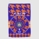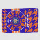 Golf Towel blue with orange hounds-tooth design and with blue, orange and white, concentric-circles design and "NEW YORK, NY CENTER OF THE UNIVERSE" and the Great Seal of New York in the centre and "New York, NY" at the top in script with Y-NOT-ME. This design is a shout-out to the city that never sleeps, New York City, New York.
