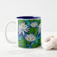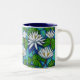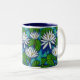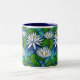 Stylish, beautiful serene scene of white water lillies floating on a blue pond by popular artist Lisa Lorenz
