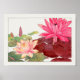 Transform your space with this serene painting that showcases two delicate pink lotuses gracefully floating on a tranquil pond. This stunning piece serves as the perfect home decor accent, bringing a sense of calm and elegance to any room.