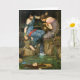 John William Waterhouse Nymphs Finding the Head of Orpheus greeting card. English artist John William Waterhouse devoted multiple paintings to the mythological character Orpheus. Nymphs Finding The Head of Orpheus is one of his most dramatic. The painting depicts two curious nymphs sitting by a small waterfall watching the head of Orpheus as it floats in a pool of water among the lily pads. A beautiful gift for fans of John William Waterhouse, Mythological Paintings, Orpheus, and Fantasy art.