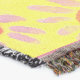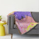 A quality printed throw has its advantages. This is a much finer weave throw than its loopier cousins, and though lighter, it is worth the investment for custom room accessorizing. The back is much prettier than the typical brown, and the fringe on the long sides very vivid, the selvage nicely done. Before photographing, I washed the throw in cold water, delicate, with a thicker woven throw the same size. On tumble dry low, this throw was dry in half the time as the other. This is a very practical quality if you use throws for furniture covers or to wrap up in frequently. The sleekness of the fabric makes it a great layer for accenting or protecting without the feeling of sitting on too much stuff. Perfect for napping or when you feel a light chill coming on. The color printing is beautiful and on this fabric, matched the design and color of my Photoshop image. This is an advantage for blending room fabrics and colors. The fringe on the short sides prints the colors from the design image and therefore varies from the side fringe. I streaked a white fractal line through the plaid pattern to give the illusion of weaving. This printed as crisp as an illusory thread, and put some white in the short side fringe, showing another advantage of print vs loomed- for artistic purposes, line lines, detail, and color integrity can be planned and preserved. My loomed throws have color limitations and more of a needlepoint texture. Print throws reproduce an exact image. The throw felt a little stiff straight out of the package, but this went away in the first delicate wash. Of course I searched the wash water for ink or bleeding and there was none.