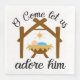 Baby Jesus in the manger with the text "O Come Let Us Adore Him".