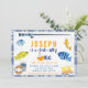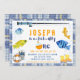 Adorable fishing themed invite to your little fisherman's 1st birthday party. Customise this perfect party invite for a with your boy's fishing 1st birthday personal details.
