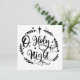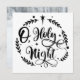 This black and white card features the words "O Holy Night" in beautiful black hand lettering calligraphy. The word grouping is surrounded by black laurel branches. On the back it has a place for a photo and you can add your name and year.