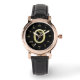 This fashionable watch features a black face and hands, gold-coloured Roman numerals, and a gold-coloured letter O. Great for an individual with the initial O.