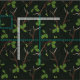 Painted deer antlers, oak leaves and acorns on a very dark green textured background.