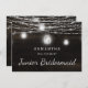 Oak Ridge Rustic Dark Brown Barn Wood, Sparkling Mason Jars, and Glowing String Lights Design with Twinkling strands of dangling lights and jars on a deep rich wood texture with white accents. With Modern Typography Script Fonts. A rustic elegant country farmhouse style design - Personalised Wedding Will you be my Jr. Bridesmaid proposal card!